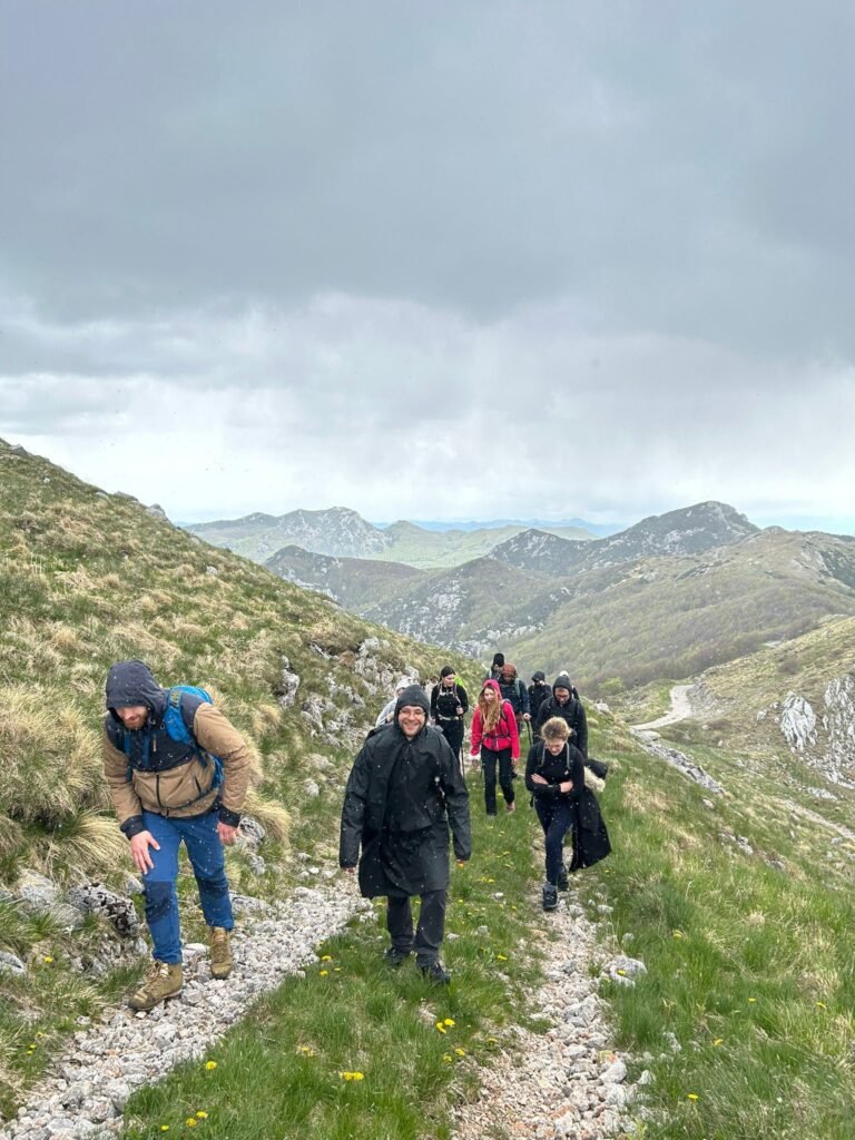 Nakon odmora, jela i slikanja iz svih kuteva i kombinacija, uputili smo se prema Guslici preko vrhova, još uvijek puni energije. Od Snježnika do Guslice trebalo nam je sat i pol, ne zbog duljine ili zahtjevnosti staze, već zbog čestih kratkih pauza kako bismo obukli i skinuli kabanice, zatim opet obukli, pa skinuli i tako dalje. Vrijeme je bilo neodlučno te kao da nas je jedan te isti oblak uporno pratio. Ali na takve okolnosti smo bili pripremljeni.