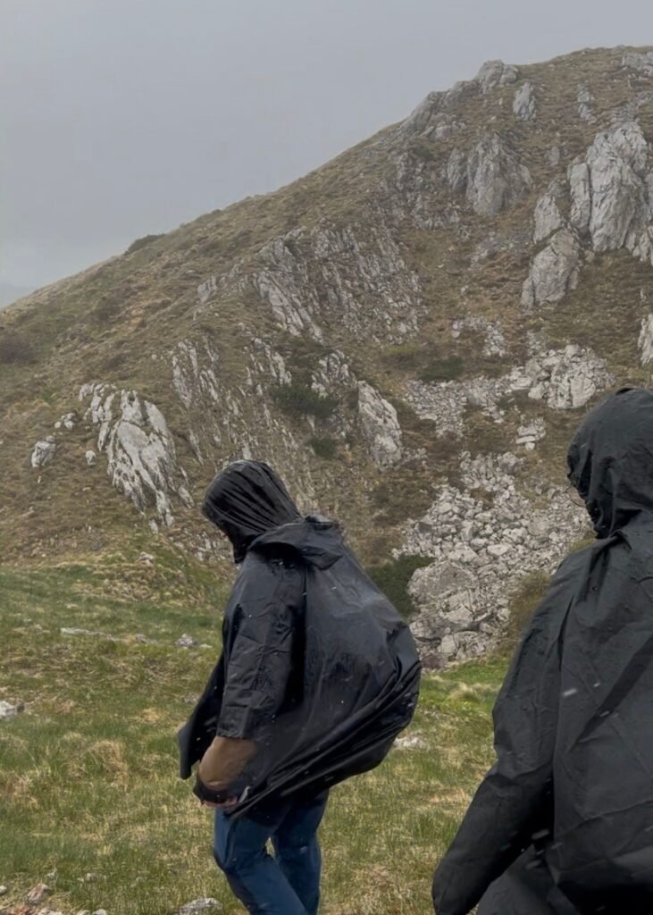 Ono na što nismo bili pripremljeni bili su uvjeti na vrhu Guslici. Kombinacija vjetra, kiše i snijega učinila je da nikome nije palo na pamet slikati se ili uzeti pauzu. Vrh Guslica je na visini od 1490 metara nadmorske visine, međutim pogled nije bio oduševljavajući jer se vidjelo maksimalnih kilometar ispred zbog oblaka i kiše. Smrznuti prsti i obrazi ošinuti komadićima leda nagnali su nas da zaklon potražimo u planinarskom domu, koji je, pogodili ste – bio zatvoren. Potjerani s vrha od strane majke prirode, uputili smo se nazad prema Platku.