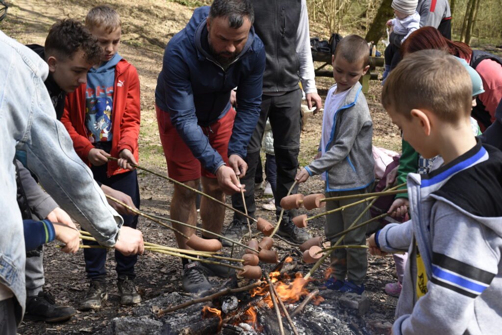 Nakon kraćeg i intimnog susreta s Ferendolom dalje smo se uputili na Vrapčansku livadu. Prizor kao iz crtića. Livada okružena šumom okupana suncem, ušuškana u nježni povjetarac ispunjena dječjim urlicima i hihotom i umornim, ali radosnim roditeljima. Ovdje te sve tjera da usporiš, da se smiriš, udahneš i promatraš. Nakon malog predaha i skupljanja dojmova, očevi su zapalili vatru i uputili se u šumu pronaći grane kako bi napravili rašlje. Na veselje djece, ali i roditelja i u velikom iščekivanju na rašlje su se počele redati kobasice i špek. Djeca su bila izvan sebe od radosti i jedva su čekala svoj red da vrte rašlje iznad vatre. Nakon što se podijelilo i blagovalo što je svatko ponio, djeca su se igrala, roditelji su razgovarali i tako je dan odmicao.